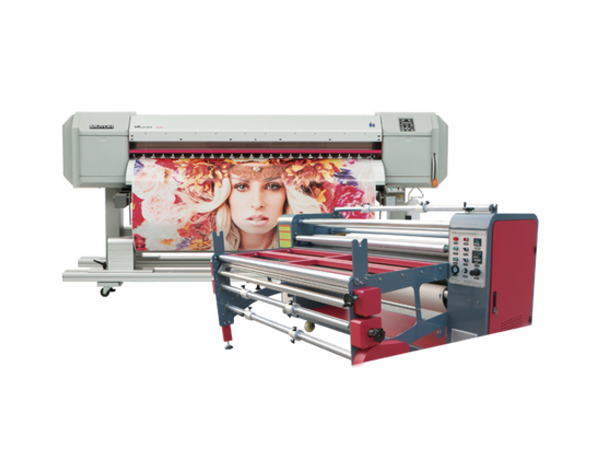 Impresión base agua sobre material en papel para transferencia en tela resolución 1440 dp´s con un ancho de impresión de 1.50 m.